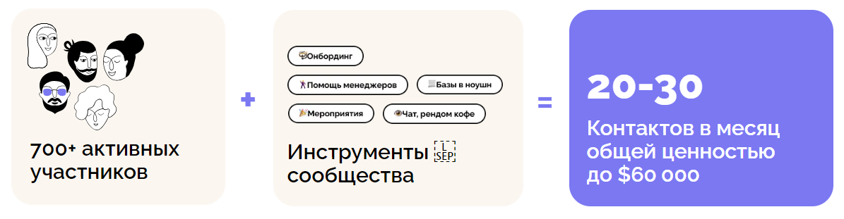 Вскоре мы ввели термин «контрибьютор» — это человек, который состоит в нашем сообществе на льготных условиях или даже бесплатно в обмен на его активное участие в жизни сообщества: организации мероприятий, помощи в продвижении.