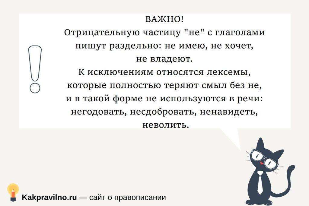 Не с глаголами пишется в большинстве случаев раздельно, но есть слова-исключения, которые следует запомнить.
