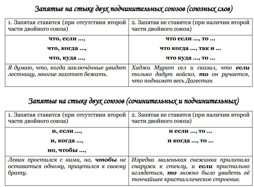 Существует много предложений, в которых присутствует не одна придаточная часть, а две и более. Всегда ли ставится запятая на стыке союзов или нет поможет сравнение двух примеров: