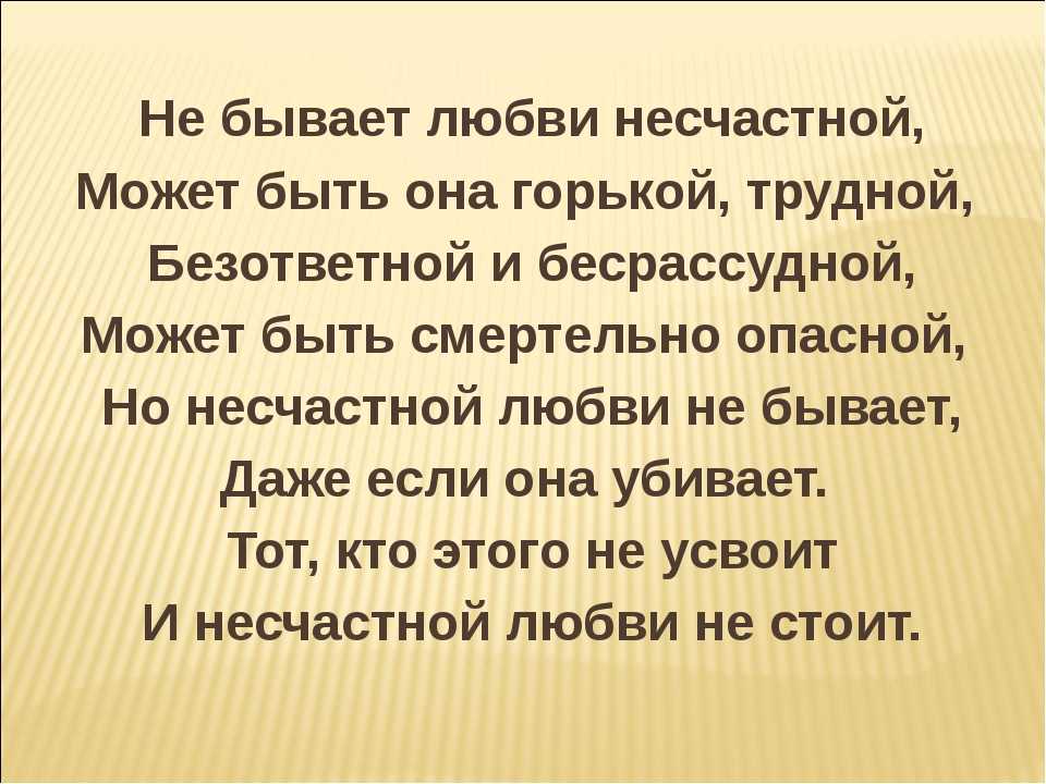 Зачастую ситуация безнадежно запутывается: любимый, но не любящий человек не хочет обидеть вас, поэтому старательно избегает общения, лукавит, врет, а самое главное — не дает конкретного ответа, оставляя вас сперва в сладостном, а потом в мучительном неведении.