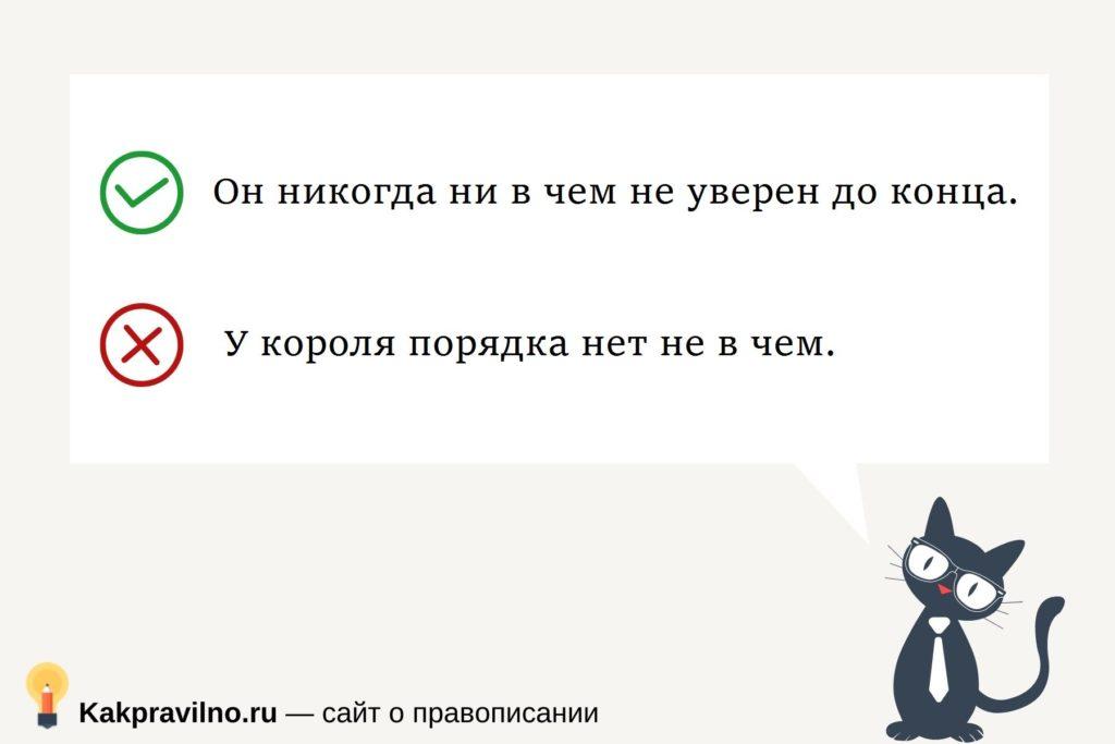 Эти правила касаются правописания выражения «ни в чем» и помогут вам избежать ошибок при написании текста. Соблюдайте эти правила и ваш текст будет грамотным и понятным для читателей.