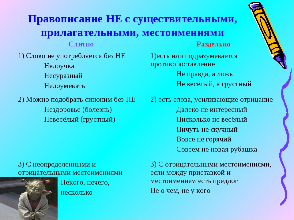 - Слитное написание будет и в случае, если слово с отрицательной частицей можно легко заменить на синонимичное, но без не. При этом сохраняется первоначальный смысл: несчастье-горе, недруг-враг и так далее. К наречиям и прилагательным такое правило тоже применяется.