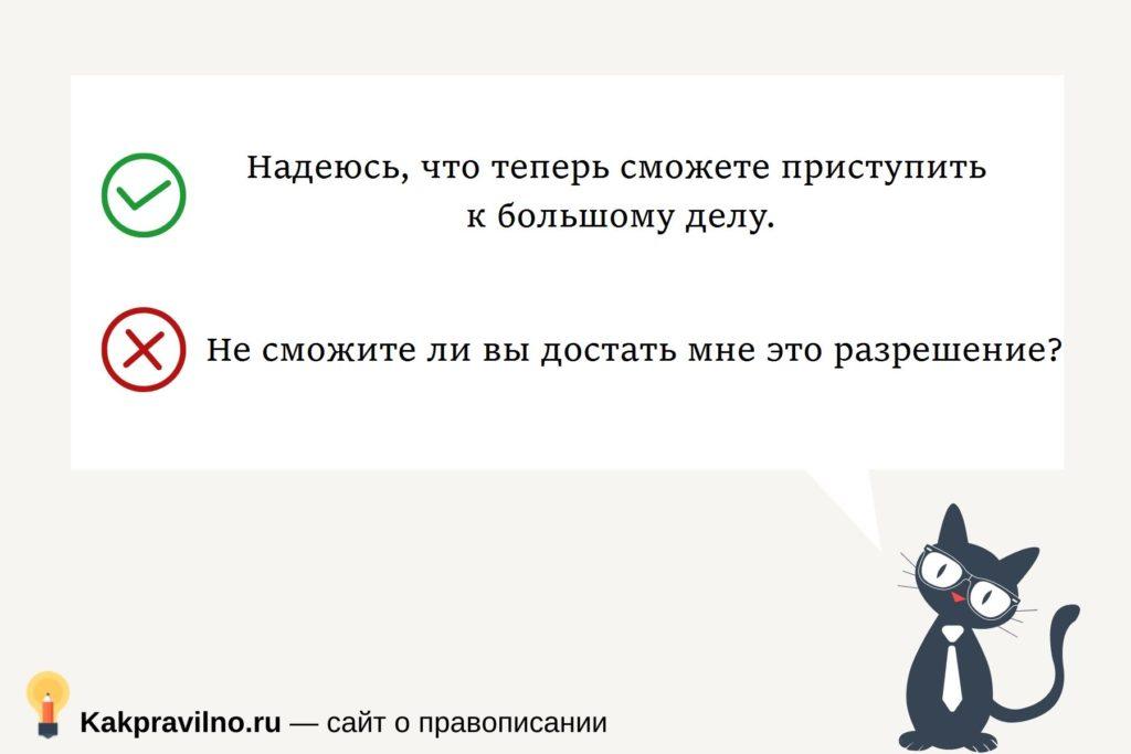 Но в условиях, по которым делятся глаголы на два типа спряжения, ничего не говорится о нулевом окончании. Значит, это правило в данном случае не работает. Определяют окончание по форме лексемы в третьем лице множественного числа. Используя местоимение они, к слову задают вопрос «Что сделают?» и получают ответ: смогут.