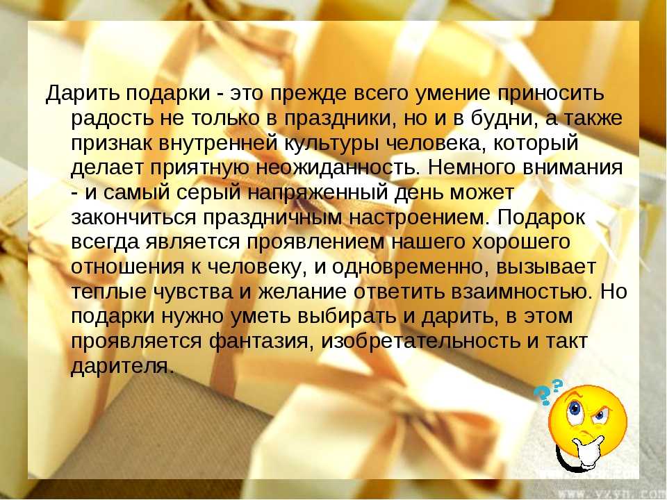 Также следует обратить внимание на правильное ударение. В фразе «в подарок» ударение падает на последний слог