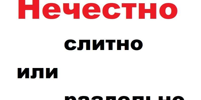 Русский язык отличается сложностью правописания в части слов и фраз, которые различаются формой написания в зависимости от контекста и особенностей положения в предложении. Часть слов звучат одинаково, но в письменной речи используются разные формы. Одно из таких слов — «нечестно». В зависимости от значения в контексте, его можно писать как слитно, так и раздельно. Слитно пишется в том случае, если в предложении его можно заменить на синоним. Например: «Так делать нечестно» («Так делать плохо»).