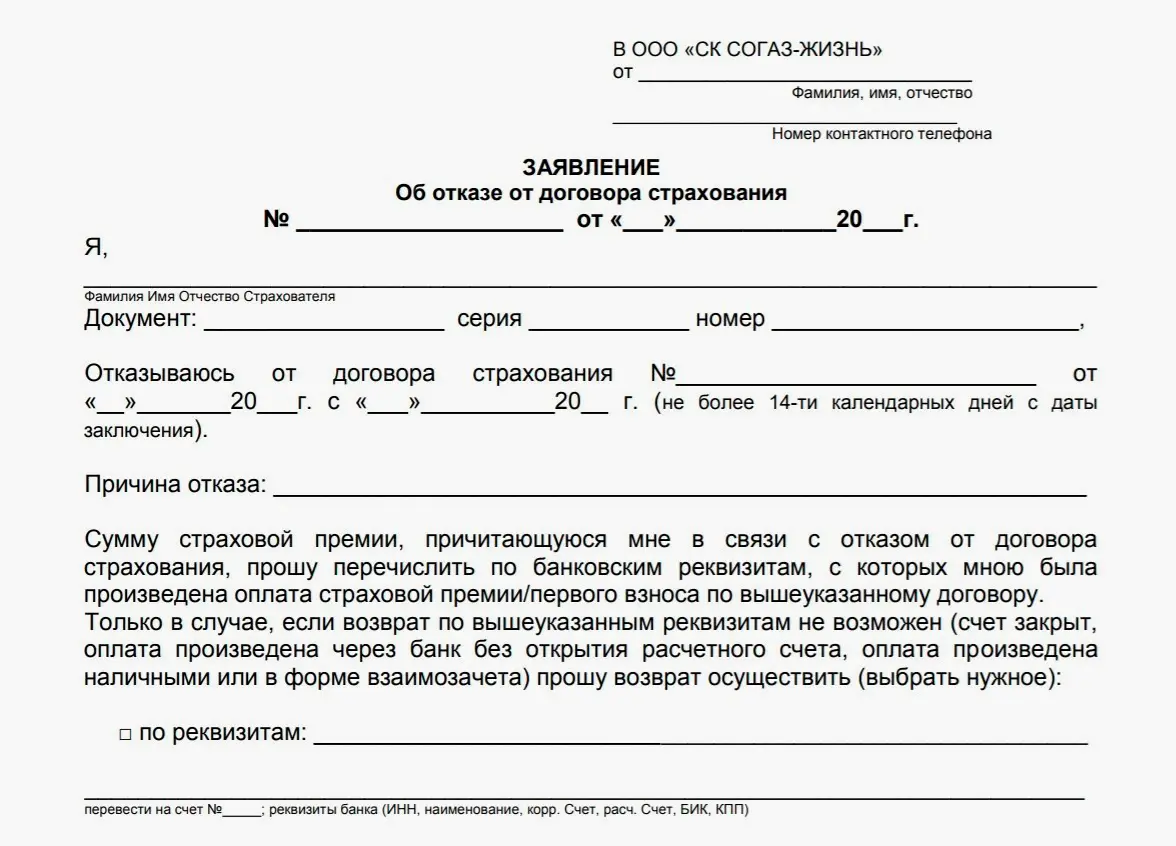 Отказ можно написать в офисе страховщика или отправить по почте с описью вложения и уведомлением о вручении. Иногда заявление можно подать через банк, в котором была оформлена страховка.