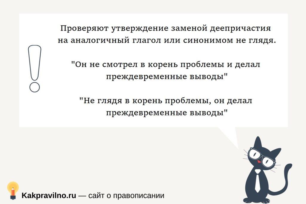 Так как деепричастие является особой глагольной формой, то перенимает признаки глаголов и подчиняется тем же самым орфографическим правилам.