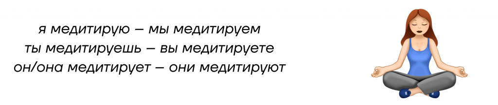 Рассмотрим на примере глагола «медитировать» изменение по лицам и числам: