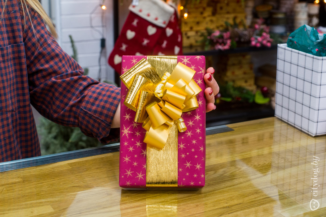 Для декора в этот раз выбрали большой бант. Ирина отмечает, что такая упаковка подходит для детей и для случая «под елку».