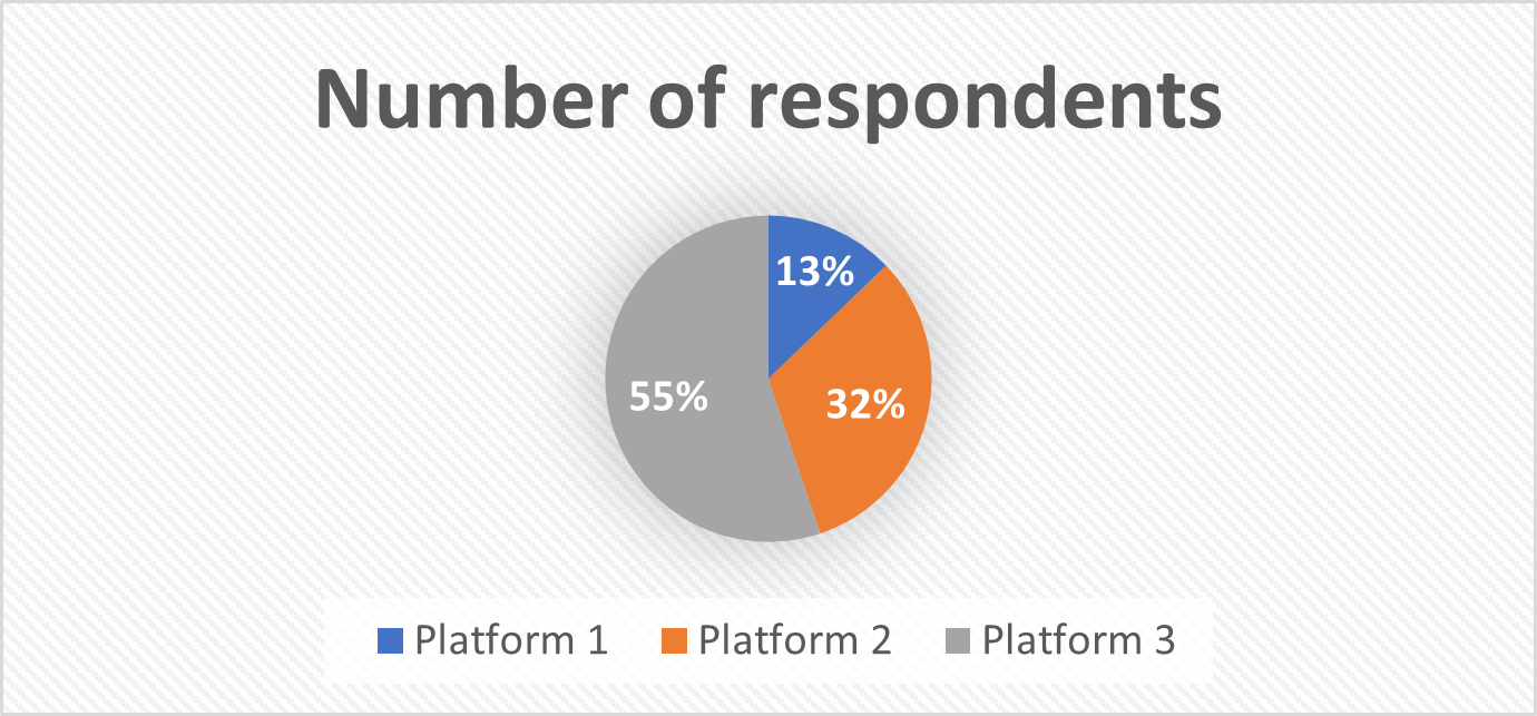 12,82% респондентов предпочитают платформу 1, 32,05% — платформу 2 и 55,13% — платформу 3.