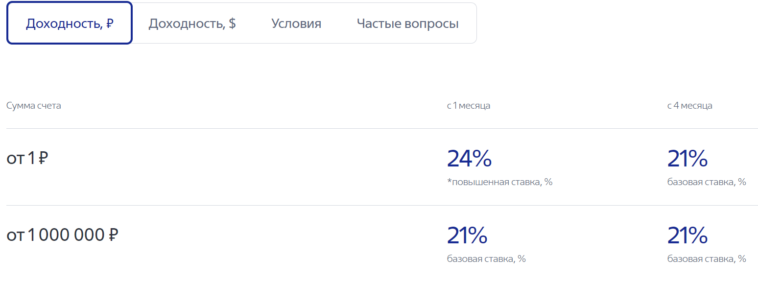 - Ставку 24% годовых можно открыть только единожды, на другие счета действует ставка 21 процент