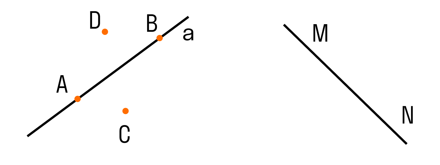 Линия представляет собой массу точек. Линии принято обозначать строчными буквами латиницы.