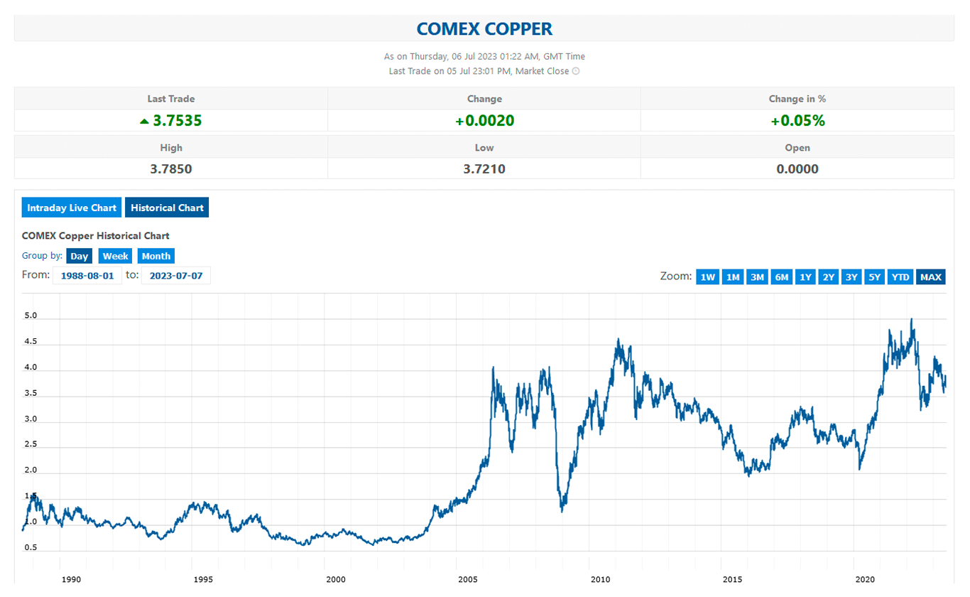 Цена на медь, как и стоимость золота, стала снижаться в 2011 году — с максимума в 4,5 доллара за фунт. Но с 2020 года цена устойчиво росла и в 2022 году достигла нового пика в 4,9 доллара за фунт.