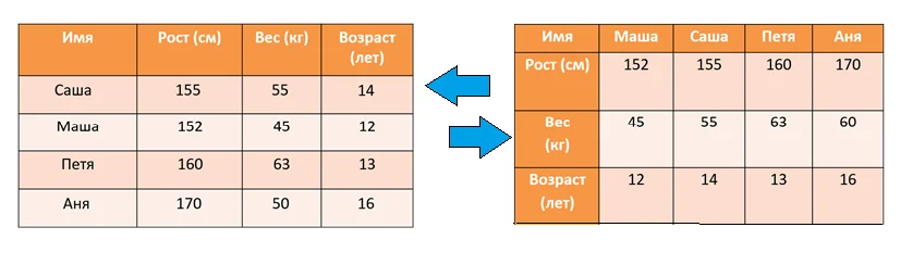 Табличная форма представления информации очень удобна для представления и обработки информации.