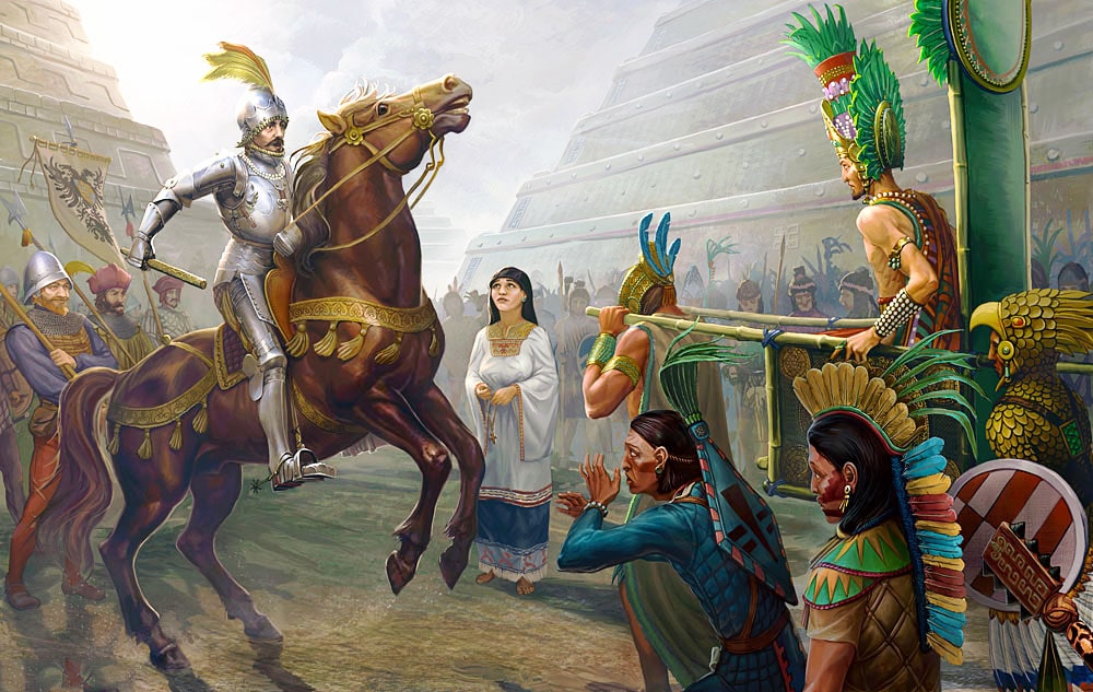 У него было 500 солдат (в их числе 16 на лошадях) и 13 пушек. Заручившись поддержкой покоренных ацтеками племен, Кортес двинулся на столицу страны – город Теночтитлан.