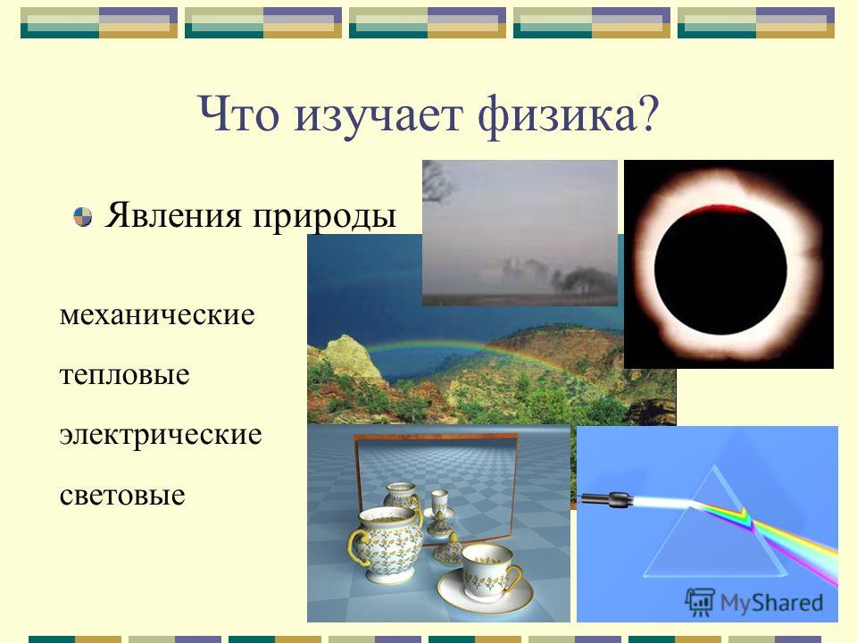 6 Что изучает физика? Явления природы механические тепловые электрические световые