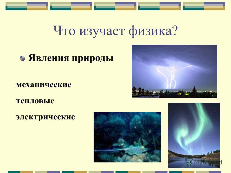 5 Что изучает физика? Явления природы механические тепловые электрические