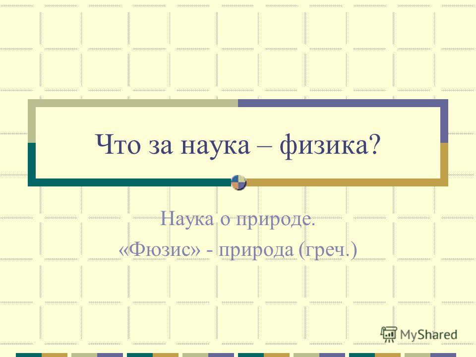 1 Что за наука – физика? Наука о природе. «Фюзис» — природа (греч.)