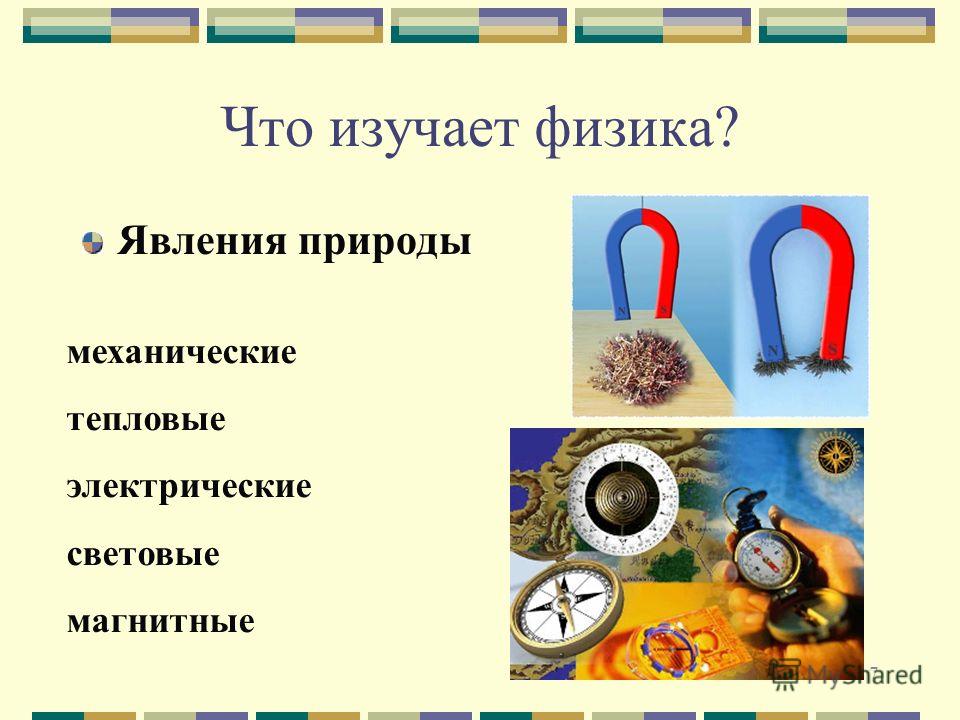 7 Что изучает физика? Явления природы механические тепловые электрические световые магнитные