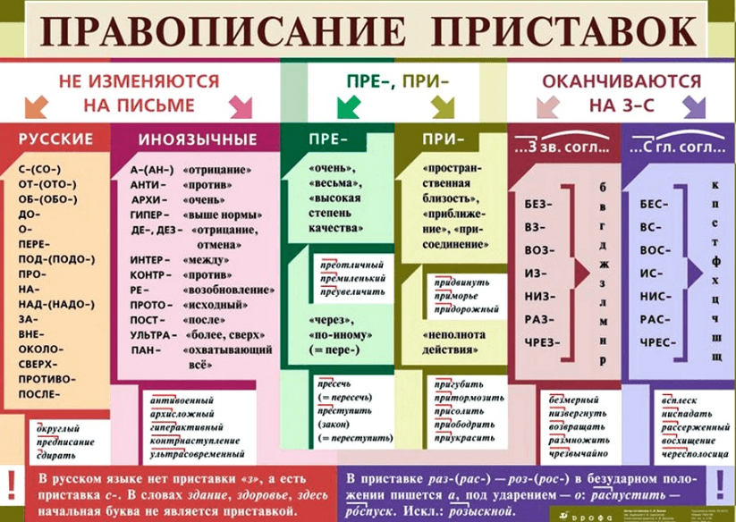 Большинство русских приставок пишутся без изменений, независимо от того, как они произносятся. Их следует запомнить, они приведены в нижеследующей таблице.