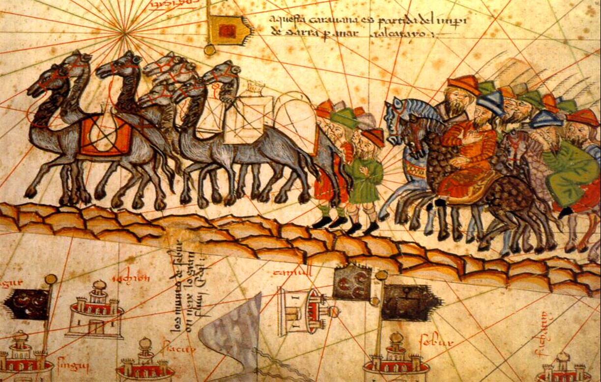 Караван на Великом Шёлковом Пути. Каталонский атлас, XIV век. (utweb.ut.edu)