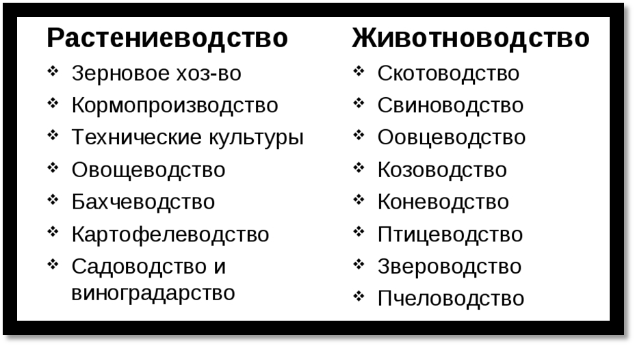 Выступая в качестве основы агропромышленного комплекса, сельское хозяйство включает в себя две основных группы отраслей – животноводство и растениеводство. Каждая из них, в свою очередь, делится на множество подотраслей.