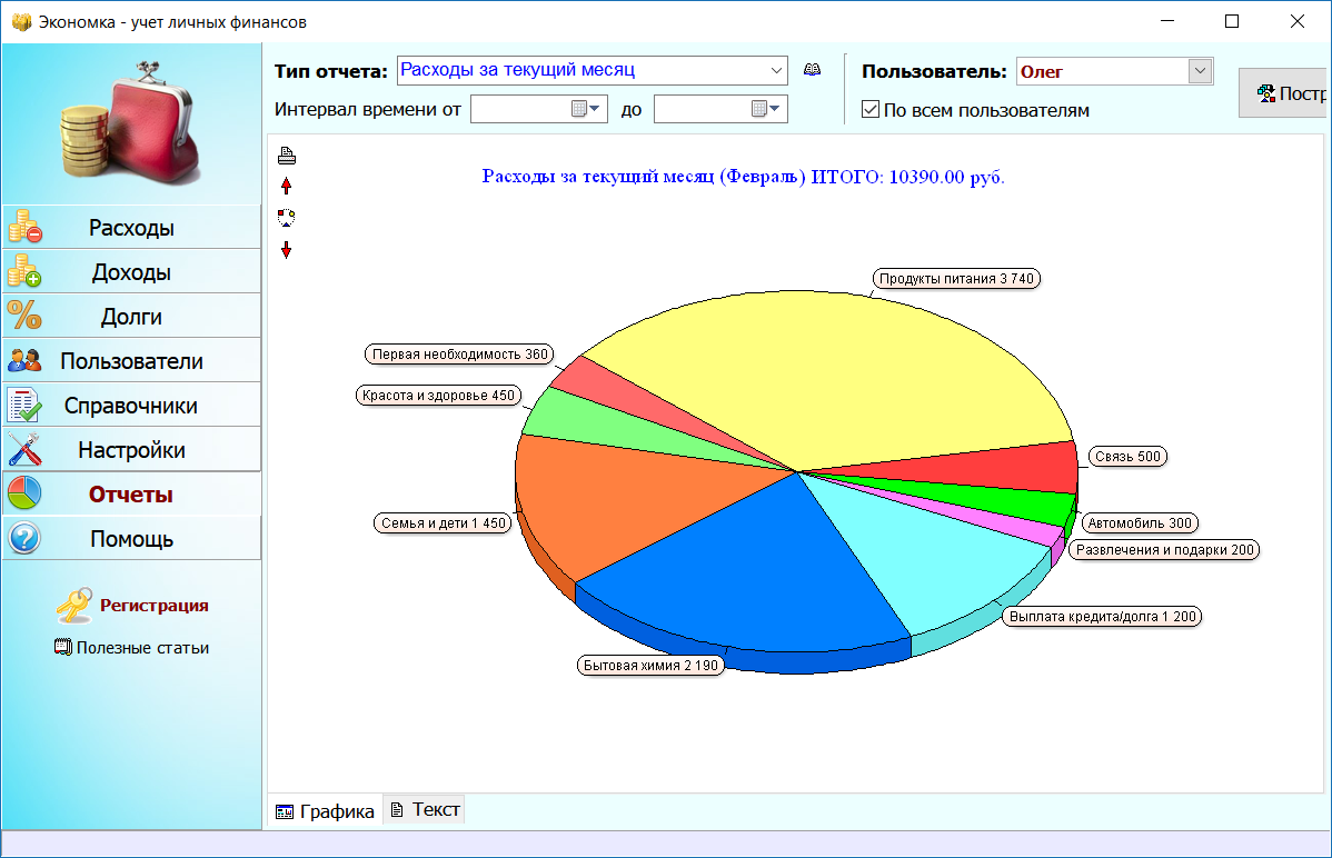 Как видите, все просто! Программа самостоятельно построит отчеты и укажет вам на самые затратные статьи расходов. Используя отчеты и таблицу расходов, вы сможете более эффективно управлять своим семейным бюджетом.