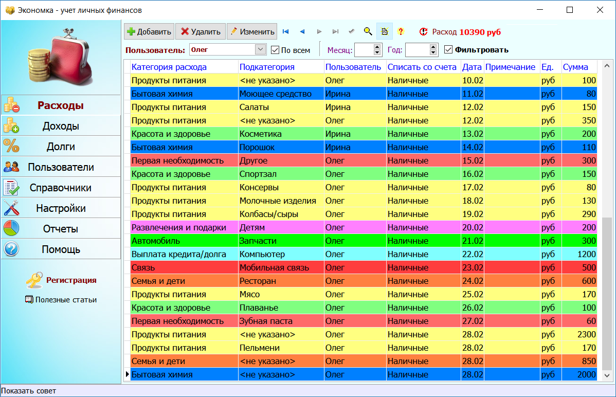 Ведение домашней бухгалтерии в программе «Экономка»