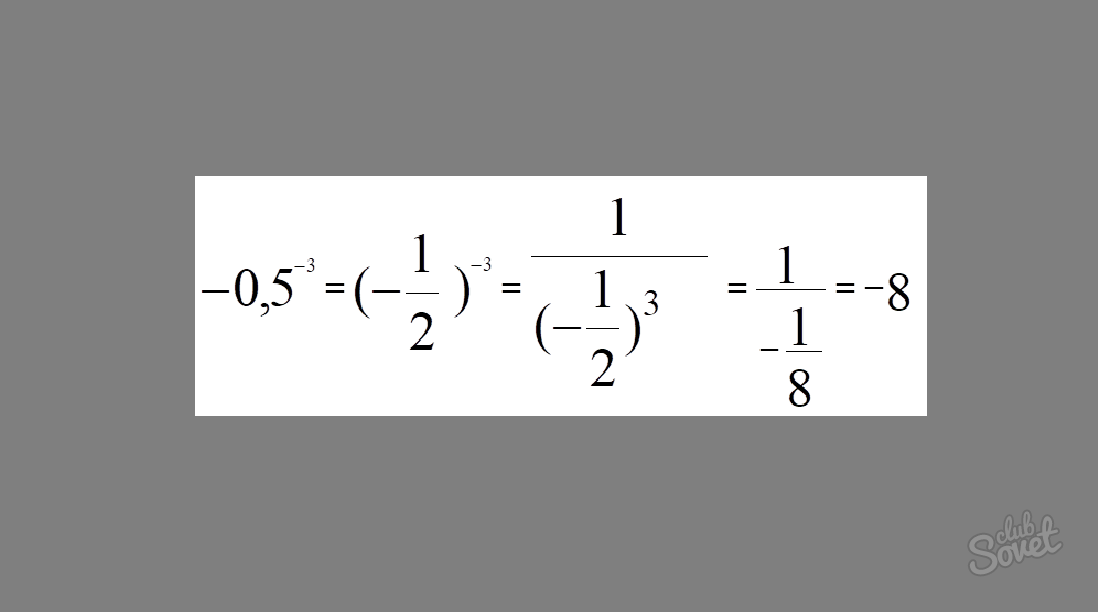 Например, чтобы возвести дробь -1/2 в третью степень, нужно выполнить следующие действия: