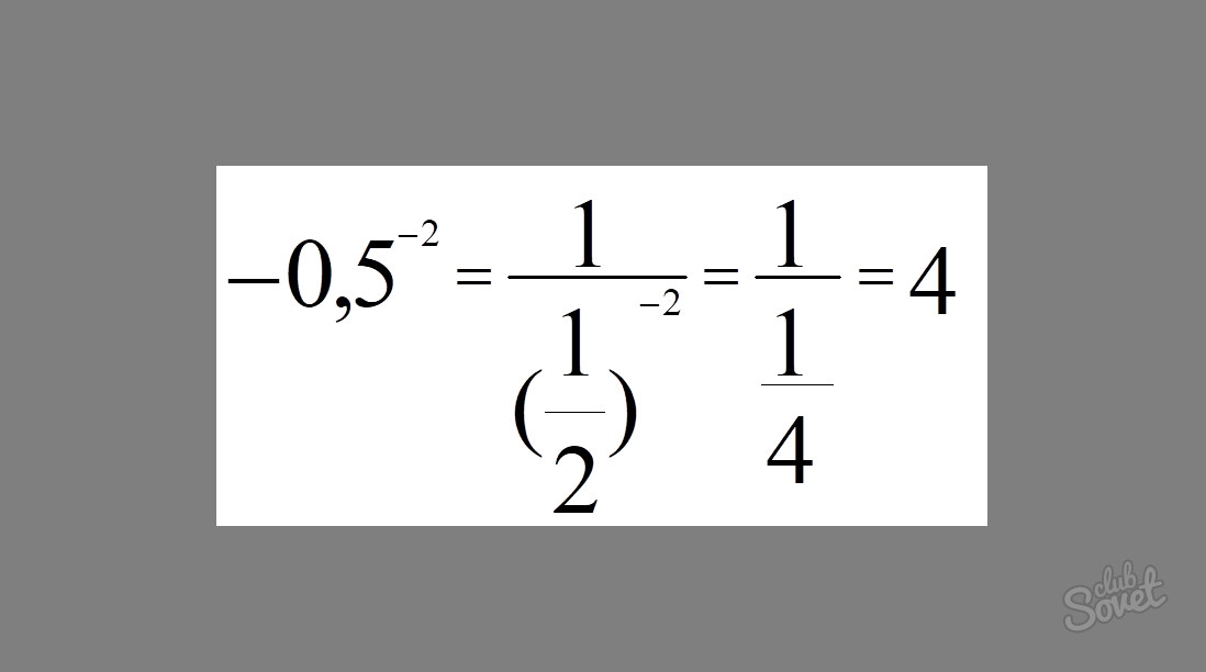 У нас остался только случай степени с целым отрицательным показателем. Мы уже разбирали, что такие степени можно записать в виде дроби 1 a z , где а — любое число, а z — целый отрицательный показатель. Мы видим, что знаменатель этой дроби есть не что иное, как обыкновенная степень с целым положительным показателем, а ее вычислять мы уже научились. Приведем примеры задач.