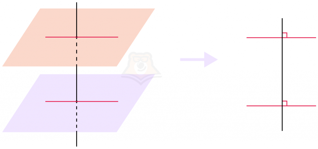 - Если две плоскости P и Q перпендикулярны одной прямой AB, то они параллельны друг другу.