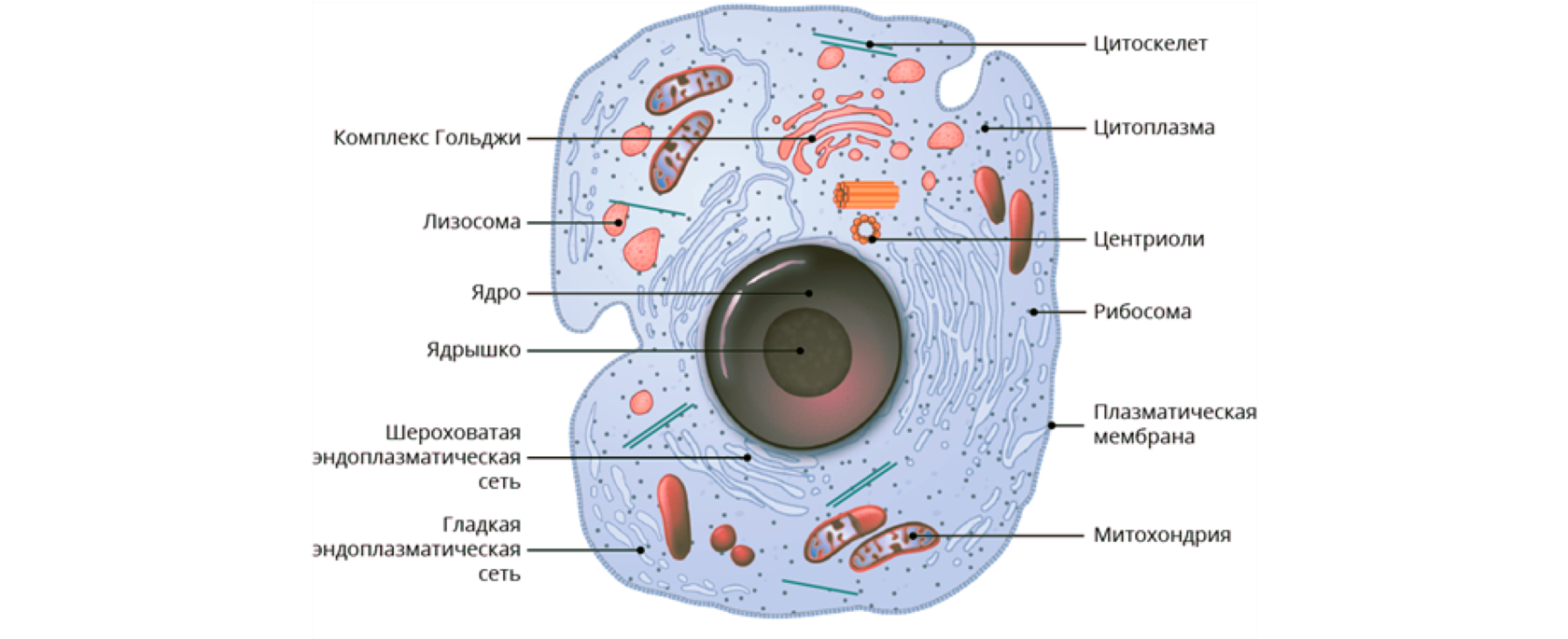Каждая клетка, независимо от своего происхождения, включает в себя стандартный набор органелл, играющих ключевую роль в процессах жизнедеятельности самой клетки. К таким органеллам относят: