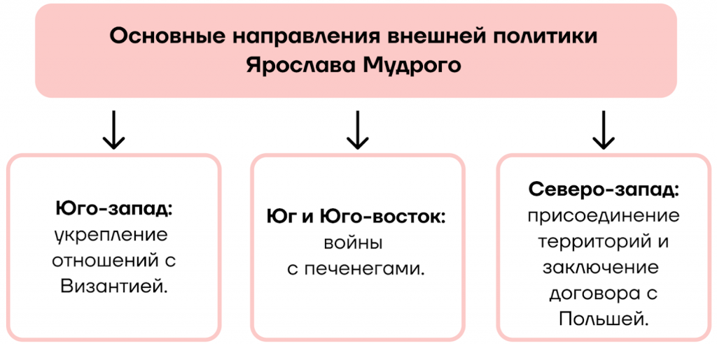 Как видим, Ярослав действовал в трех основных направлениях. Довольно сложная тема — внутренняя политика Ярослава Мудрого. Таблица поможет в ней лучше разобраться.
