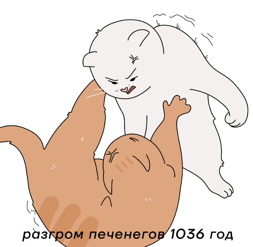 - Разгром печенегов. Ярослав продолжил укреплять южные рубежи государства и воевать с печенегами. Уже в 1036 году он окончательно разбил их под Киевом, после чего они больше не решались нападать на Киевскую Русь.