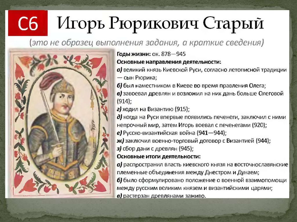 В 945 году собирая дань с древлянских земель Игорь был убит.