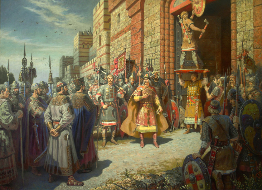 В 882 году Олег совершает поход на Киев и объединяет с Новгородом. Столицу переносит в Киев. Историки считают данный год основанием Киевской Руси. После объединения севера и юга Руси Олег получает контроль над главным торговым путем “Из варяг в греки”. Заключается договор с Византией о торговле без уплаты пошлин. Данные события благотворно сказываются на экономике Руси.