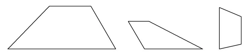 - нет параллельных сторон — трапеция ( τραπεζοειδή , trapezoeidé , буквально трапециевидный ( εἶδος означает «похожий»), точно так же, как кубовидный означает кубический , а ромбовидный означает ромбовидный )