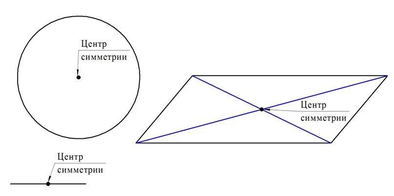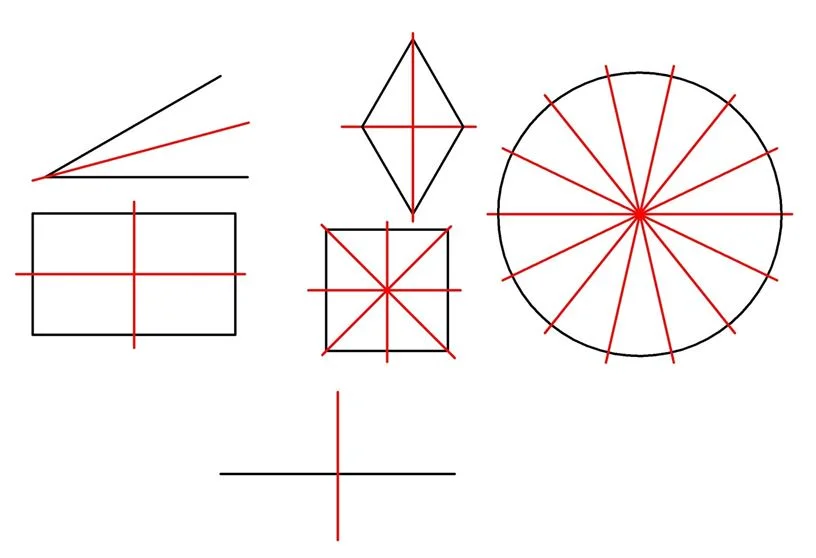- Соединяющий середины параллельных сторон геометрической фигуры отрезок будет центром симметрии трапеции – разделяет четырёхугольник на два одинаковых, отраженных зеркально.