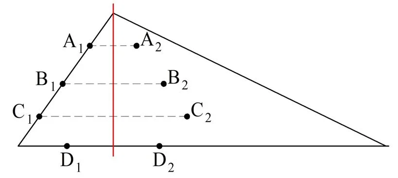 Например, если верхнее основание трапеции равно 6 см, то средняя часть нижнего основания также равна 6 см.