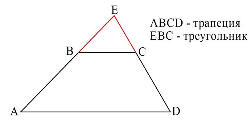 Основаниями четырёхугольника называют параллельные стороны, непараллельные – боковыми. Перпендикуляр, проводимый между параллельными сторонами, зовётся высотой геометрической фигуры; отрезок, что соединяет центры боковых сторон, именуют средней линией. Последняя разделяет геометрическую фигуру на две подобные.