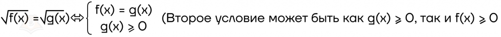 Несколько более сложным является случай, когда справа стоит не постоянное число, а какое-то выражение с переменной g(x). Алгоритм решения тот же самый – необходимо возвести в степень ур-ние, чтобы избавиться от корня. Но, если степень корня четная, то необходимо проверить, что полученные корни ур-ния не обращают правую часть, то есть g(x), в отрицательное число. В противном случае их надо отбросить как посторонние корни.