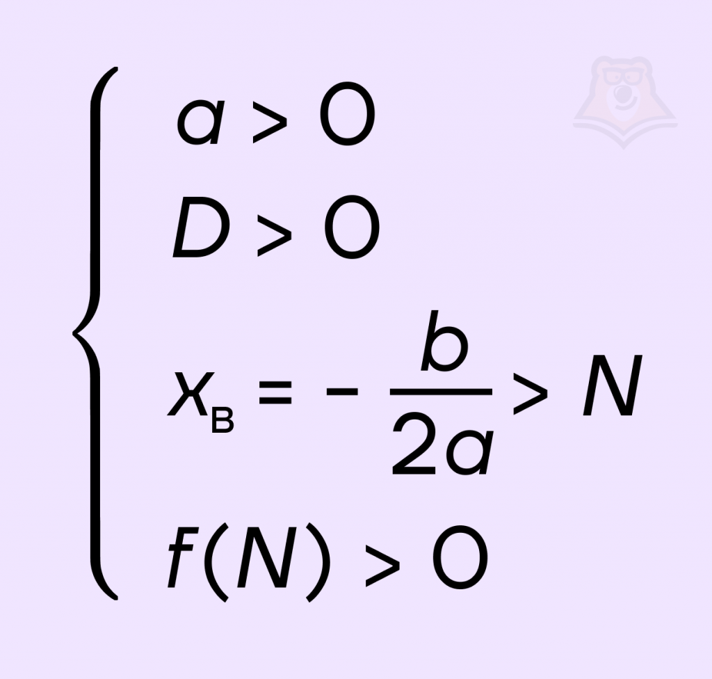 В случае 2. Отрицательный дискриминант. Дискриминант говорит нам, что график этой квадратичной функции – парабола, которая существует, только над осью Ох: значит, вообще не принимает отрицательные значения.